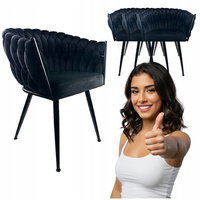 4x Krzesło tapicerowane Miki Czarne Fotel Welurowe do kuchni jadalni salonu