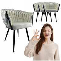 4x Krzesło Beżowe welurowe tapicerowane czarne nogi plecione kuchni salonu
